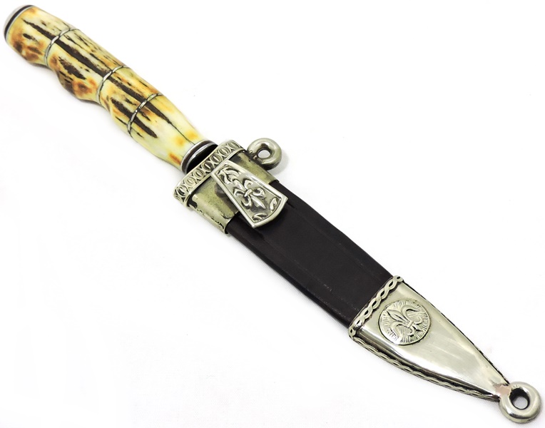 Cabo: Chifre de Cervo Axis - europeu, detalhes em alpaca combinando com a bainha