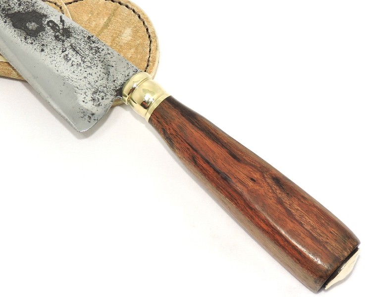 Cabo: Madeira nobre de alta densidade: Angico rachado, boa empunhadura, guarda em latão.