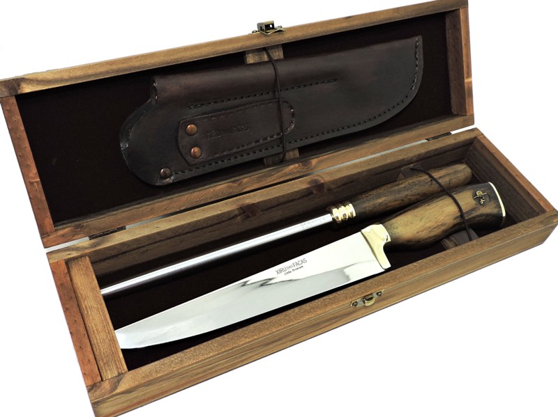 Conjunto Faca e Chaira Lisa Premium, especial para carnes, churrasco