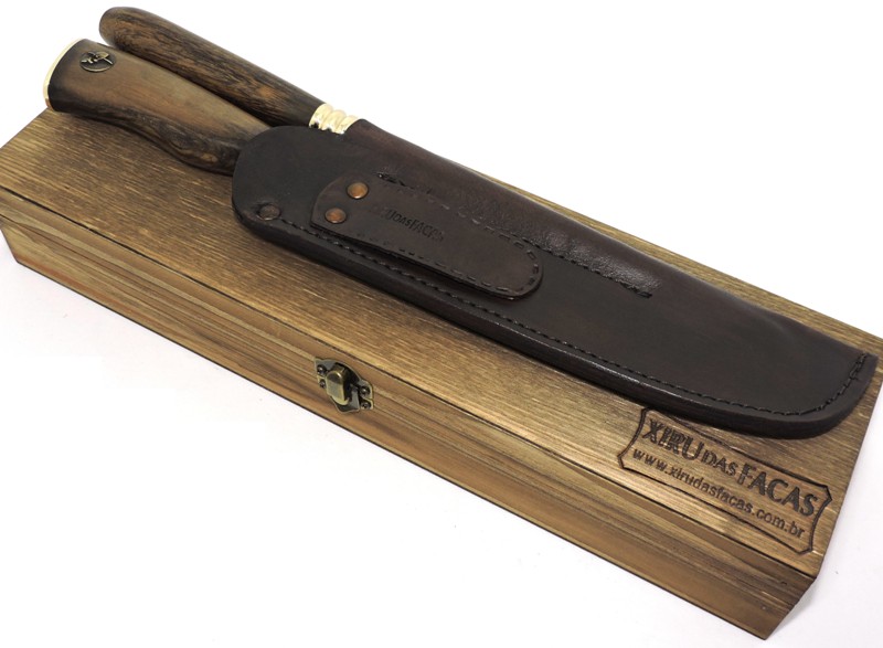 Bainha: Confeccionada artesanalmente em couro natural, se ajusta perfeitamente a lâmina.