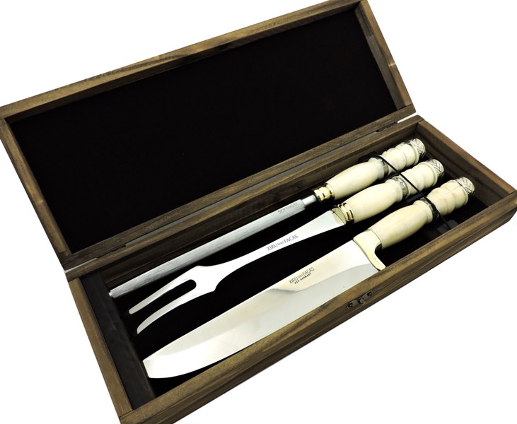 Conj. Faca e Garfo Aço Alemão, Chaira Estriada Estojo. - Xiru das Facas