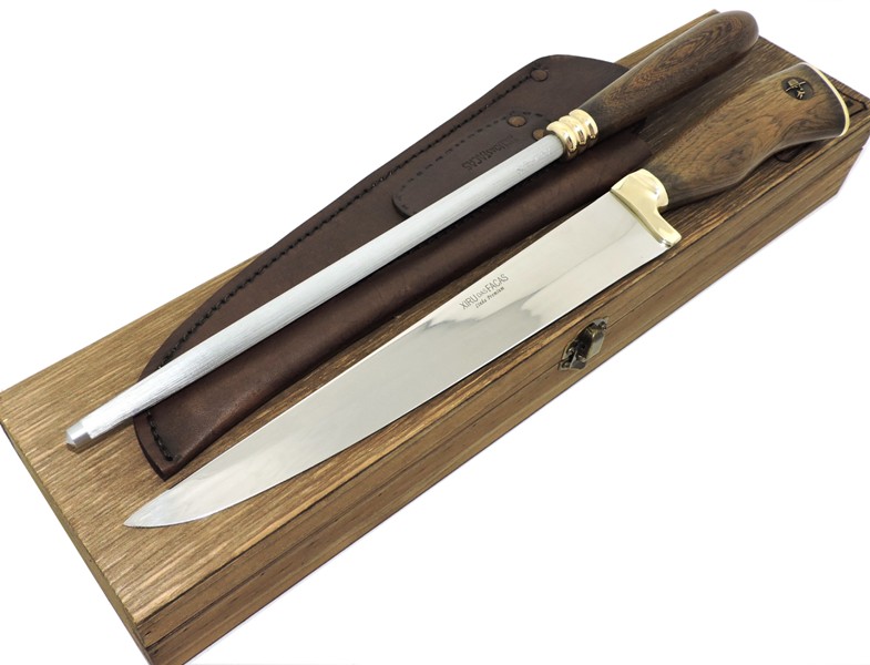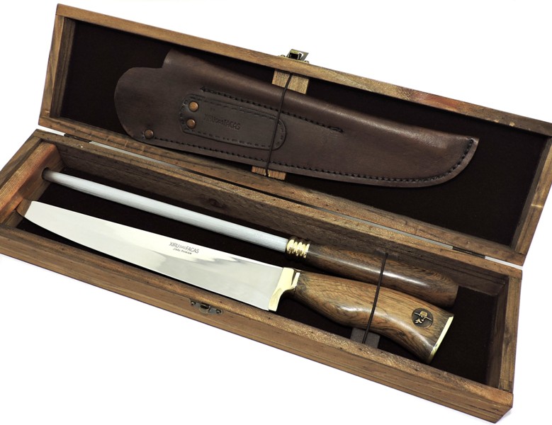 Conjunto Faca e Chaira Estriada Premium, especial para carnes, churrasco