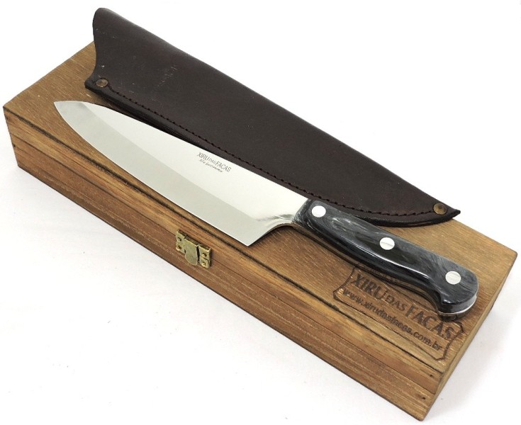 Faca Alta Gastronomia, desenvolvida sob os mais altos parametros de tempera e revenimento para uso intenso, diário, excelente retenção de corte.