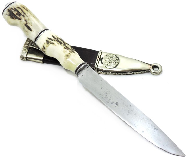Cabo: Chifre de Cervo Axis - europeu, detalhes em alpaca combinando com a bainha