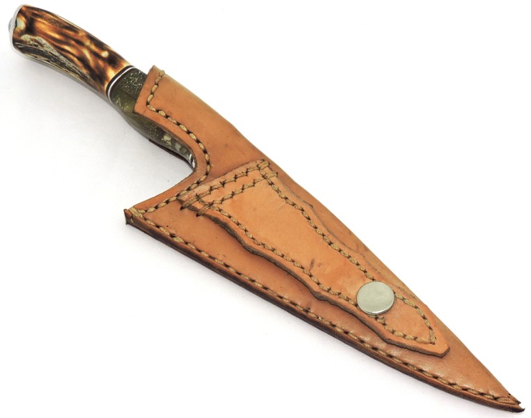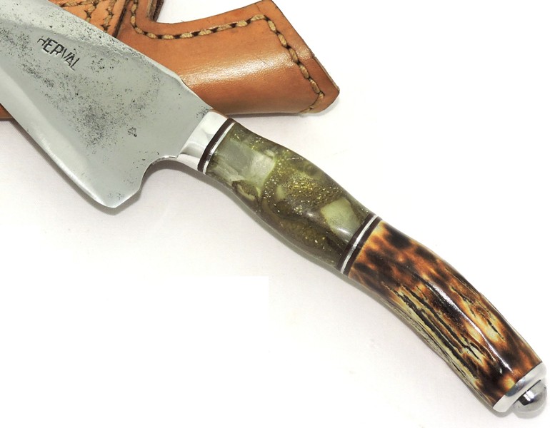 Cabo: Chifre de cervo europeu - Axis e Hidrido bicolor, de alta resistência, trabalhado em alpaca mexicana, fino acabamento.