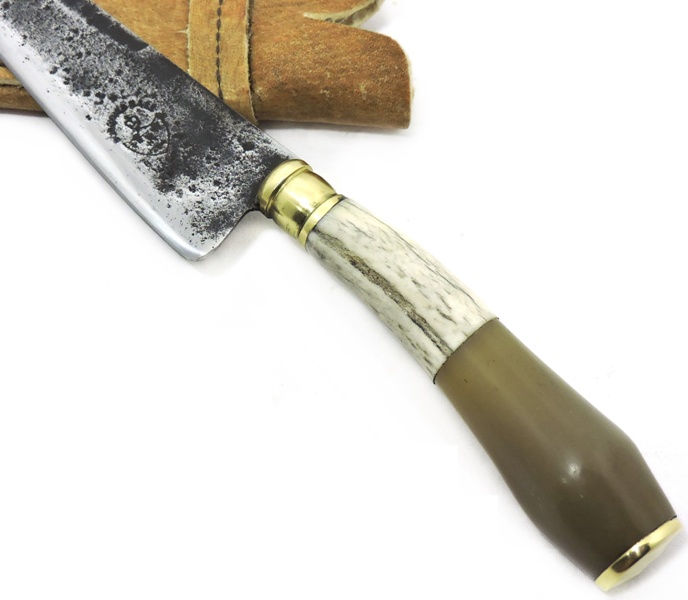 Cabo: Chifre cervo e bovino, excelente empunhadura. boa empunhadura, guarda em latão.