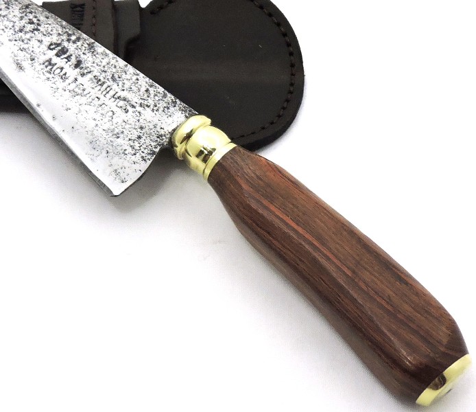 Cabo: Madeira nobre de alta densidade: Jacarandá, guarda e pomo em latão de excelente empunhadura.