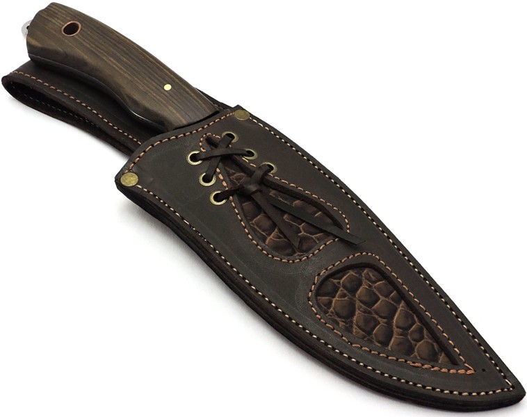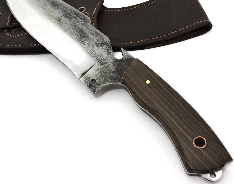 Cabo: anatômico fulltang com talas de ao estilo gaucho de madeira nobre de alta densidade - Guajuvira, boa empunhadura.