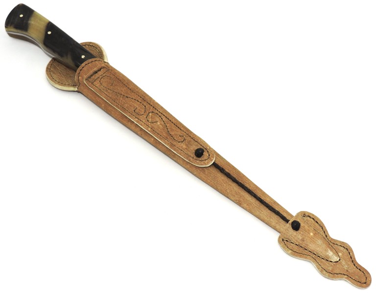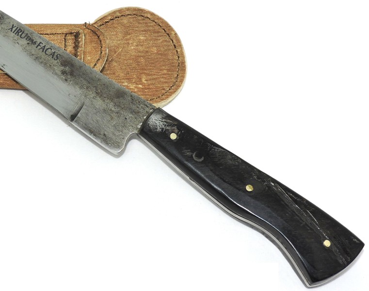 Bainha:Confeccionada artesanalmente em couro crú natural, se ajusta perfeitamente a lâmina.