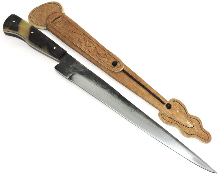 MEDIDAS: Lâmina: 26 cm. Cabo: 11 cm. Espessura: 3,3 mm. Largura: 3,2 cm.
