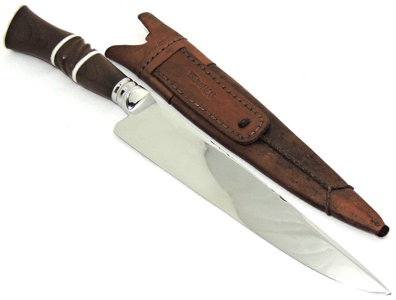 Cabo: Anatômico de madeira nobre - cerno de Imbuia, excelente empunhadura, pomo em latão.