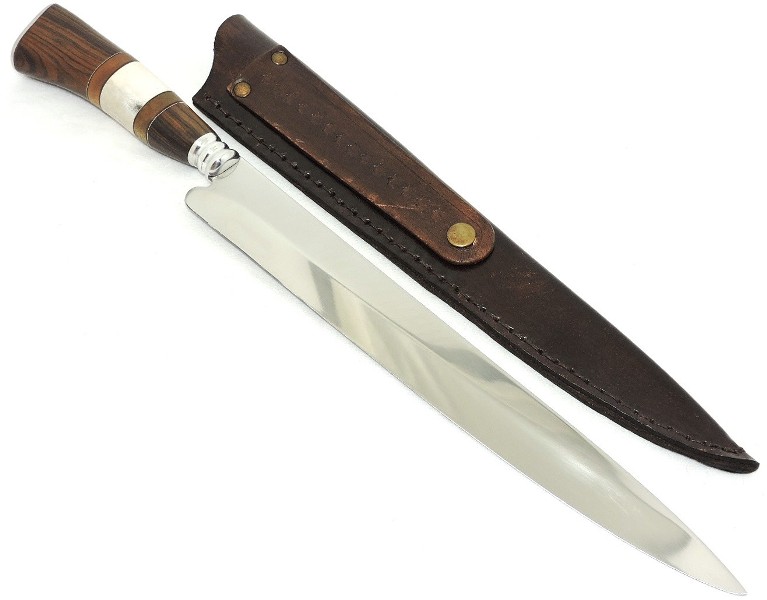 MEDIDAS: Lâmina: 28 cm. Cabo: 13 cm. Espessura: 3 mm. Largura: 3,5 cm.