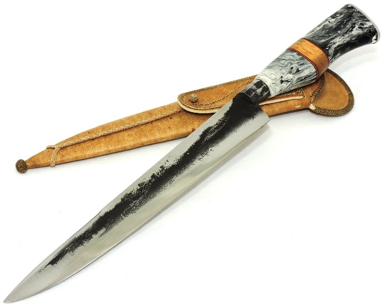Faca forjada de antiga mola de trem "Maria Fumaça", sob os padrões da arte e qualidade da cutelaria tradicional gaúcha.