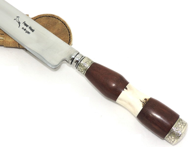 Cabo: Madeira nobre - Pau Brasil e Chifre de cervo europeu - Axis e Imbuia, trabalhado com alpaca mexicana.