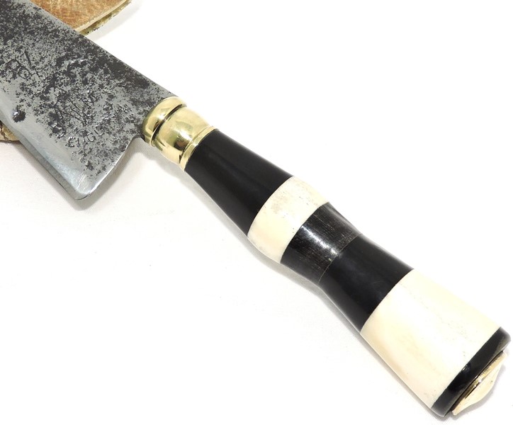 Cabo: Chifre bufalo, Osso, guarda e pomo em latão, excelente empunhadura.