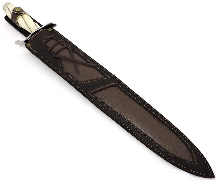 Bainha: artesasal, trabalhada com tento de couro natural, passa cinto tipo pantaneiro, ajuste perfeito da lâmina.