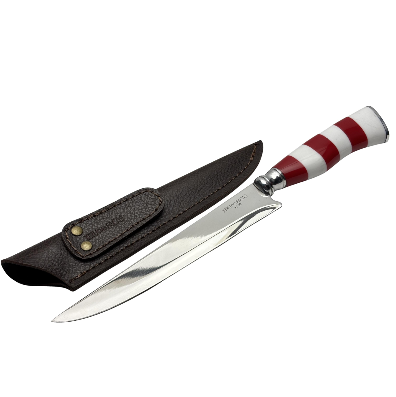 xiru12 Faca Premium Especial Churrasco 12 pol. Bainha Couro Ofertas da Semana Faca Premium para carnes, churrasco ou cozinha, fio de navalha. Desenvolvida nos padrões e arte da cutelaria tradicional gaúcha. Tempera de qualidade profissional, proporcionando a... R$355,00